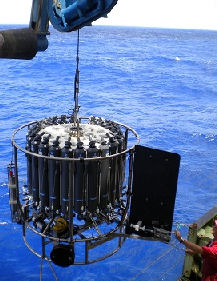 The data and samples from the CTD tell us about the chemistry of the water, which should lead us to the vent sites in the Cayman Trough when we use it there. But today's results - as we're not yet at the Cayman Trough - will provide a baseline for comparisons with those future samples.