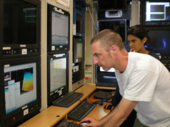 There are eight laboratories, which can be customised for different scientific expeditions. The main lab is the hub for science activity, with more than 50 monitors displaying data from the ship's scientific instruments. As standard, the ship is equipped with underway sensors that monitor the temperature and salinity of surface waters, and the currents in the upper ocean. The ship also carries several sonar systems, including a multibeam bathymetry system for mapping the seafloor.