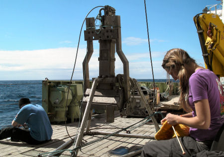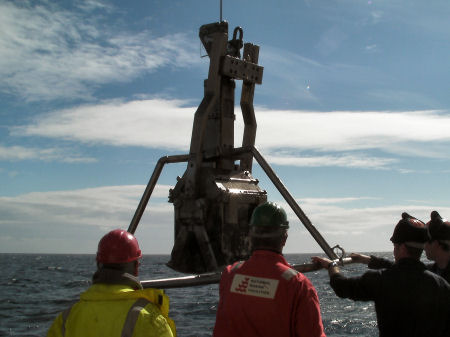 We completed our work at Hook Ridge today. This morning we deployed a box corer, which collects more sediment than the megacorer, to get a better idea of what lives here. And in the afternoon, we towed an Agassiz trawl (which takes its name from 19th century deep-sea biologist Alexander Agassiz) to collect some of the animals that live away from the vent site. All biology hands were on deck to sieve the mud from the trawl afterwards: an operation involving a shovel, a fire hose, sieves and buckets, and eagle-eyed biologists poised with forceps for picking out specimens.