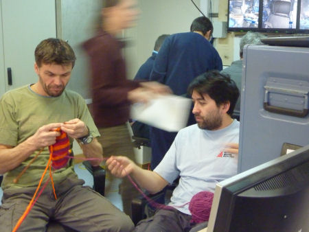 Watching the traces on the CTD monitor displays can be very repetitive. So to help pass the time, knitting seems to be a new craze sweeping the ship. Several members of the team bought wool in Chile, and have been teaching others how to knit, pearl and drop.