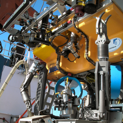 We will be working at a depth of 2.7 kilometres, and it will take the ROV two hours to reach the seafloor, and two hours to return from it. So our bottom time during a dive lasting 10 to 12 hours each day will be limited to 6 to 8 hours. We will therefore be using the ROV primarily to collect samples, and measure the distribution of life on vent chimneys using a high-definition video system and the ROV's precision position-control capabilities.