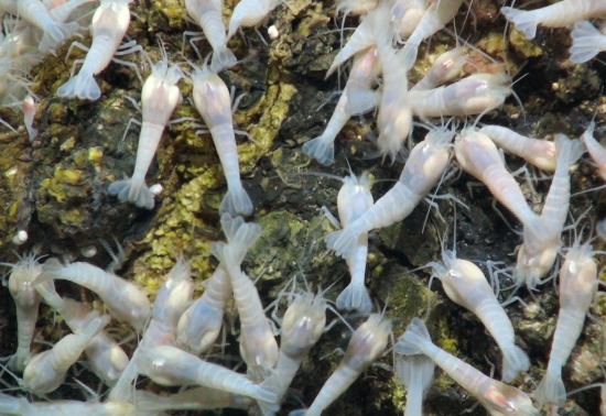 We collected samples of the hottest fluids, and then surveyed and sampled the deep-sea creatures basking around them. The Von Damm vents are home to an abundant new species of shrimp, which my PhD student Verity described and named from specimens collected when we discovered these vents in April 2010.
