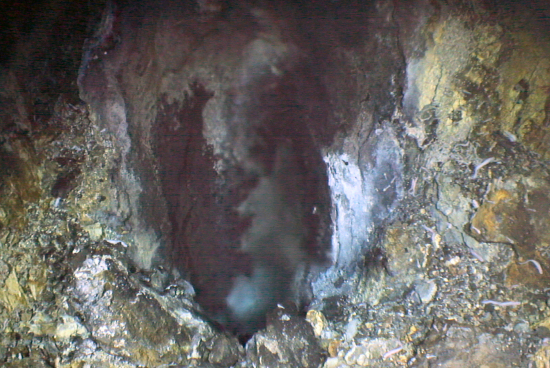 Throat of the main Von Damm vent; the dark area is approx 2 metres wide